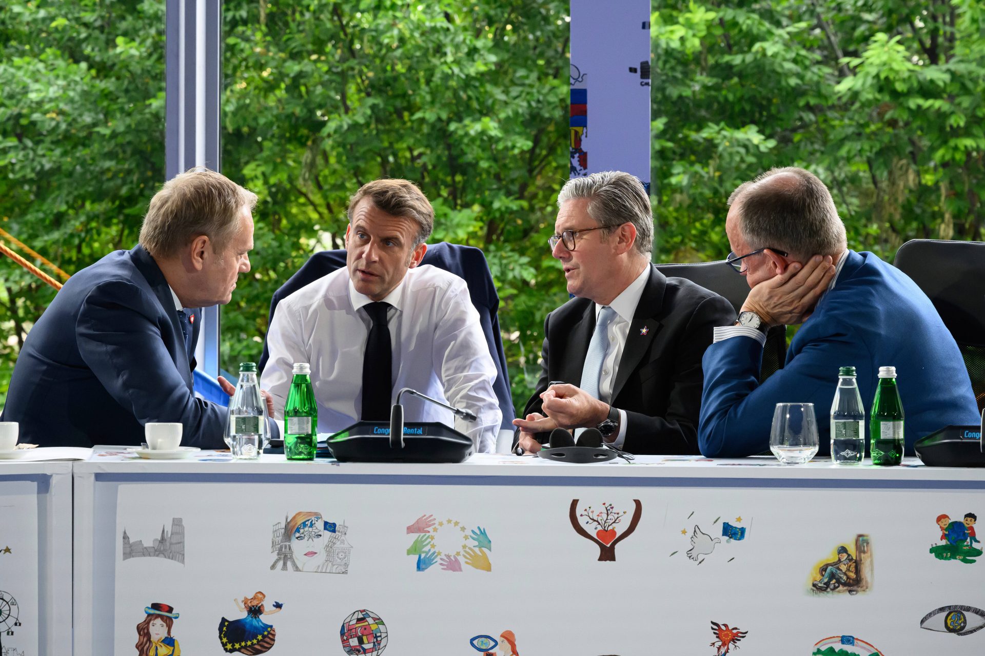 Von diesem Bild sollte eine Botschaft ausgehen: Friedrich Merz steht zwischen dem französischen Präsidenten Emmanuel Macron, dem polnischen Ministerpräsidenten Donald Tusk und dem britischen Premier Kier Starmer. Dabei erklärt der Bundeskanzler: „Wir sind uns einig darüber, dass die russische Seite eine gute Gelegenheit gehabt hätte, erste Gespräche über ein Friedensabkommen mit einem vorangegangenen Waffenstillstandsabkommen zu führen. Wir sind sehr enttäuscht, dass dies nicht stattgefunden hat. Es lag der Ball ausschließlich bei Russland.“