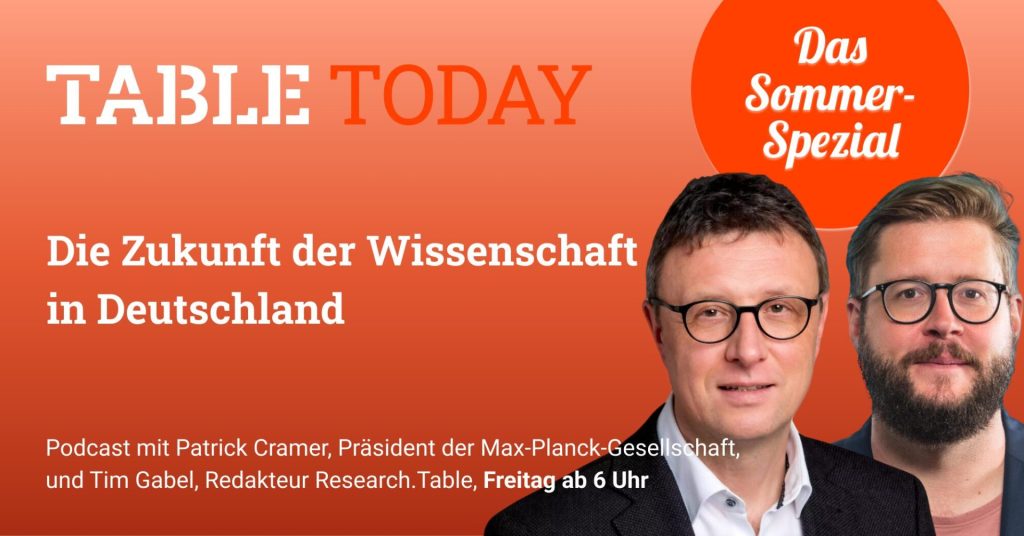Damit die Wissenschaft in Deutschland international spitze bleibt, brauche es eine gelebte Willkommenskultur und eine offene Gesellschaft, sagt der Präsident der Max-Planck-Gesellschaft, Patrick Cramer im Podcast von Table.Briefings. Die Forschung müsse “jünger, weiblicher und internationaler” werden. Der Wissenschaftsboss blickt deshalb besorgt auf die anstehenden Landtagswahlen und die US-Präsidentschaftswahl. Was es für die deutsche und internationale Forschung bedeuten könnte, wenn Donald Trump eine zweite Amtszeit bekommt und wie Cramer seine Rolle in der Fördermittel-Affäre des BMBF sieht, hören Sie ab 6 Uhr hier