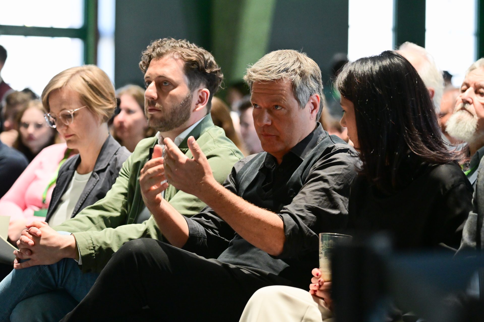 Viele Führungspersonen, unklare Aufgabenverteilung: Franziska Brantner, Felix Banaszak, Robert Habeck und Annalena Baerbock beim Länderrat im April