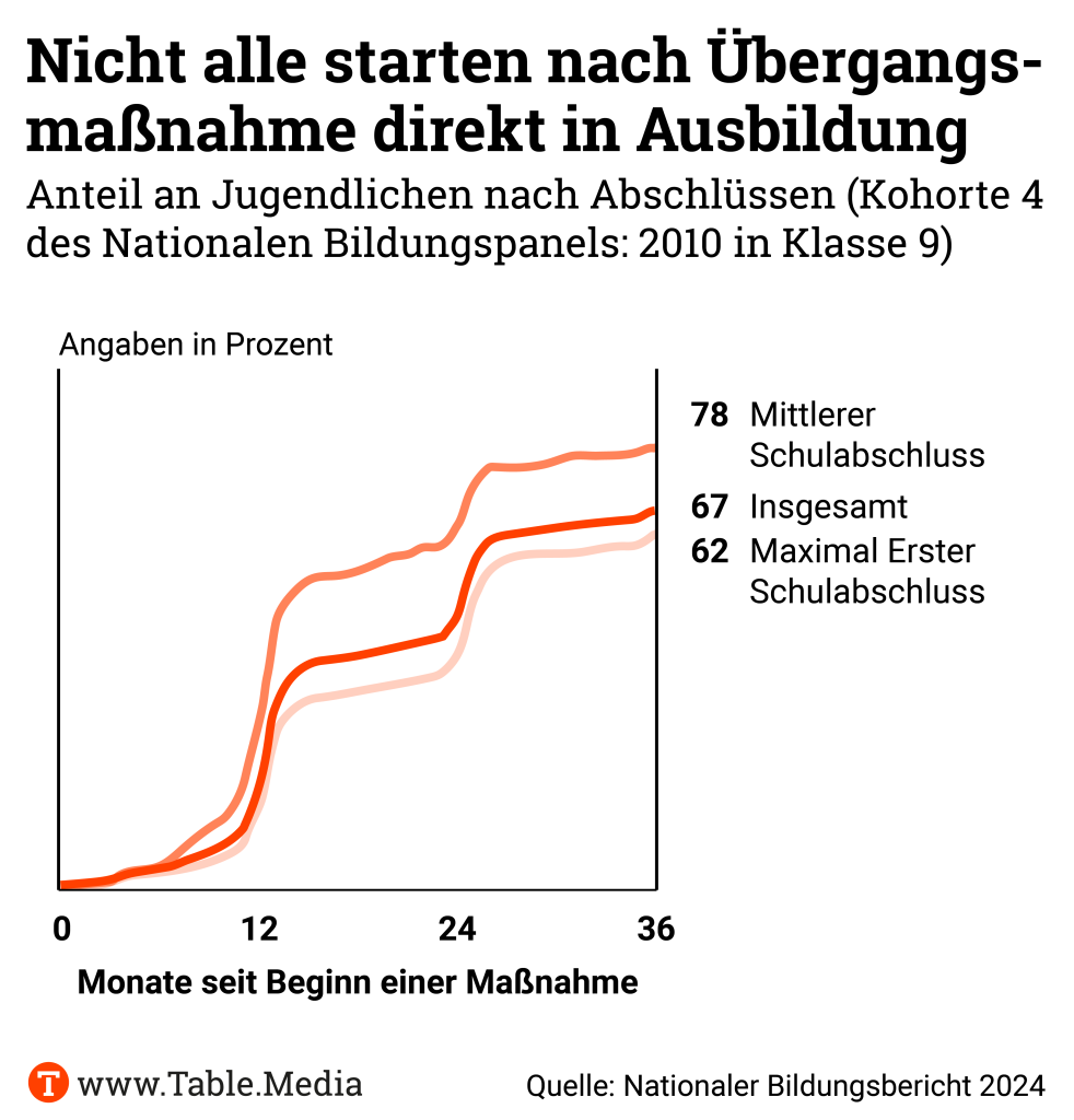 Nochmal zurück zu den Jugendlichen im Übergangssektor: Auch 36 Monate nach Start einer Übergangsmaßnahme haben es nach Daten des Nationalen Bildungspanels nur zwei Drittel in eine Ausbildung geschafft. Wie können die Länder hier die Wirkung steigern?