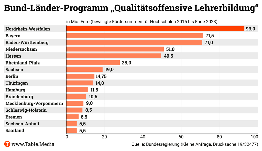Die Qualitätsoffensive hat das BMBF finanziell allein getragen. Diese Förderung läuft nun aus, so wie es die Bund-Länder-Vereinbarung vorsieht, teilt ein Sprecher mit. “Für die Sicherung der Ergebnisse und deren Transfer sind zuvorderst die für die Lehrkräftebildung zuständigen Länder in der Pflicht.“