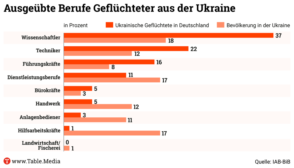Die Länder haben unterschiedliche Bedingungen für die Einstellung ukrainischer Lehrkräfte geschaffen, weswegen die bundesweit mehr als 3.200 ukrainischen Lehr- und Hilfskräfte nicht gleich verteilt sind. Die wenigsten Ukrainer stellten das Saarland und Thüringen ein, die meisten Bayern und Sachsen. Das Reservoir an ukrainischen Lehrkräften dürfte jedoch noch weit größer sein. Nach Zahlen der Bundesarbeitsagentur haben mehr als ein Drittel der Geflüchteten zuvor in der Ukraine als Wissenschaftler gearbeitet. Darunter fallen in der Statistik auch Lehrerinnen und Lehrer.