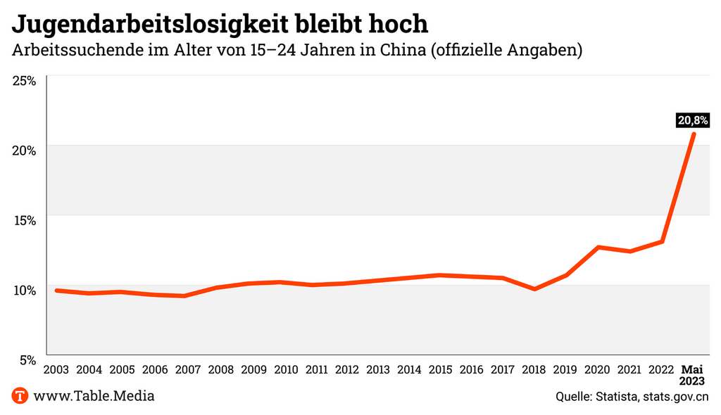 Die Jugendarbeitslosigkeit ist keines neues Problem, aber bislang hatte Peking wohl darauf gehofft, dass sich mit Ende der Corona-Politik auch die Wirtschaft und damit auch der Arbeitsmarkt schnell erholen würden. Doch der Aufschwung ist ins Stocken geraten, wie Fabian Kretschmer schreibt.