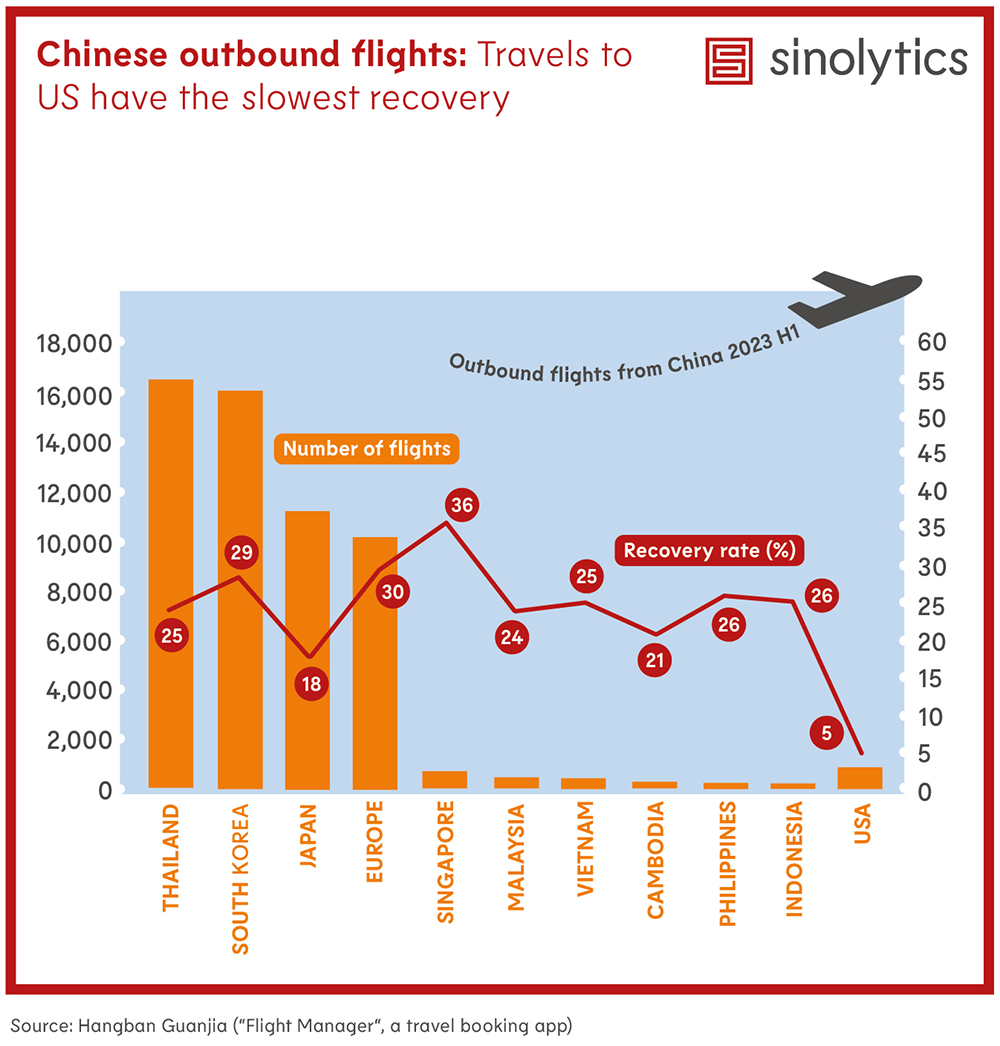 Der Auslandstourismus hat sich jedoch noch nicht vollständig erholt, was auf die begrenzte Verfügbarkeit von Flugzeugen und die Beschränkungen von Gruppenreisen zurückzuführen ist – die nach Branchenschätzungen etwa 30 Prozent der chinesischen Auslandsreisen ausmachen.