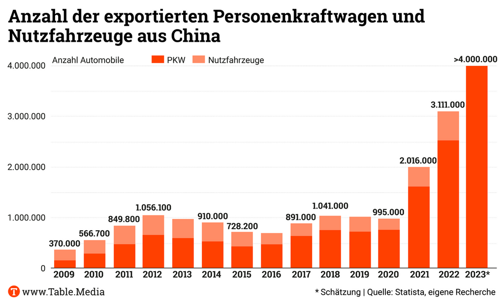 Der Aufbau neuer Transportwege per Schiene entlastet den überforderten Schiffsverkehr und schiebt den Export an. Für das laufende Jahr erwarten Analysten, dass Chinas Autobauer erstmals mehr als vier Millionen Autos zu exportieren. Damit würde die Volksrepublik Japan als führendes Autoexportland ablösen. Im ersten Quartal ist das bereits gelungen: Mit den gut 1 Million Fahrzeugen, die das Land laut chinesischer Zollbehörde ausführte, hat es Japans 955.000 Export-Autos übertroffen.