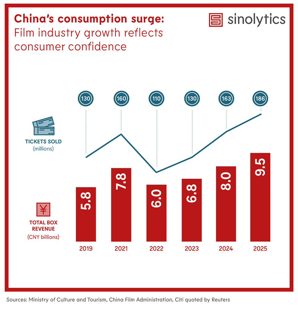 Laut den Analysten von Citi signalisiert das starke Wachstum an den Kinokassen einen soliden Start in das Jahr der Schlange. Dass das Wachstum der Filmausgaben das der Reiseausgaben übertraf, deutet zudem auf eine Verschiebung der Verbraucherpräferenzen in Richtung Kulturkonsum hin.