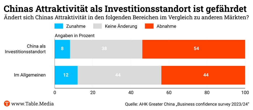 vor einem Jahr hofften die deutschen Unternehmen in China, dass das Land sich nach der Pandemie öffnen und 2023 ein kräftiger Aufschwung einsetzen würde. Das war damals zumindest das Ergebnis einer Umfrage der Deutschen Handelskammer in Peking. Die Umfrageergebnisse aus diesem Jahr, die das Geschäftsklima vor Ort beleuchten, sind deshalb nun vor allem auch ein Realitäts-Check.