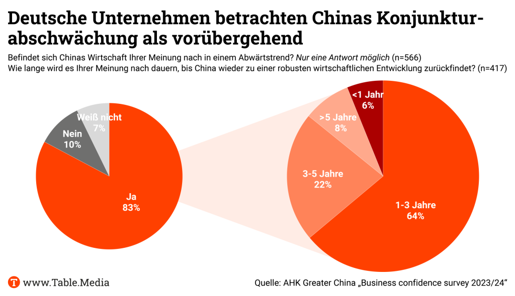 Mehrzahl der deutschen Unternehmen rechnet mit Abwärtstrend der chinesischen Wirtschaft