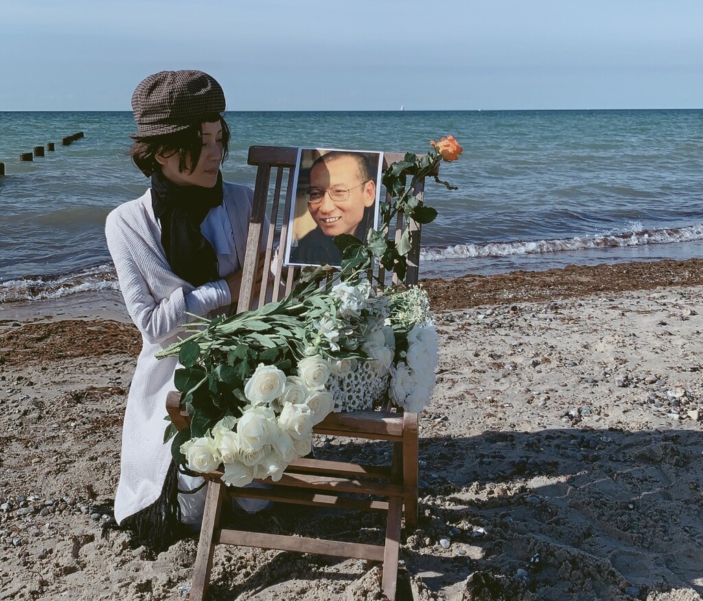 Su Yutong bei einer Erinnerungs-Aktions für den Schriftsteller Liu Xiaobo.
