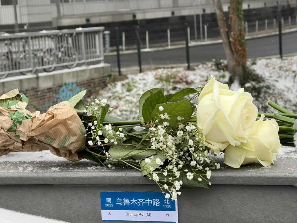 Sticker auf der Jannowitzbrücke erinnern an die Proteste in der Wulumuqi Road in Shanghai