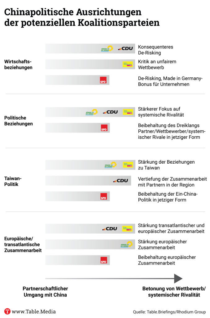 26.02.2025, 09:00 Uhr (16:00 Uhr CST) Table.Media & Merics, Webinar: Welche Chinapolitik braucht Deutschland nach der Bundestagswahl?Mehr