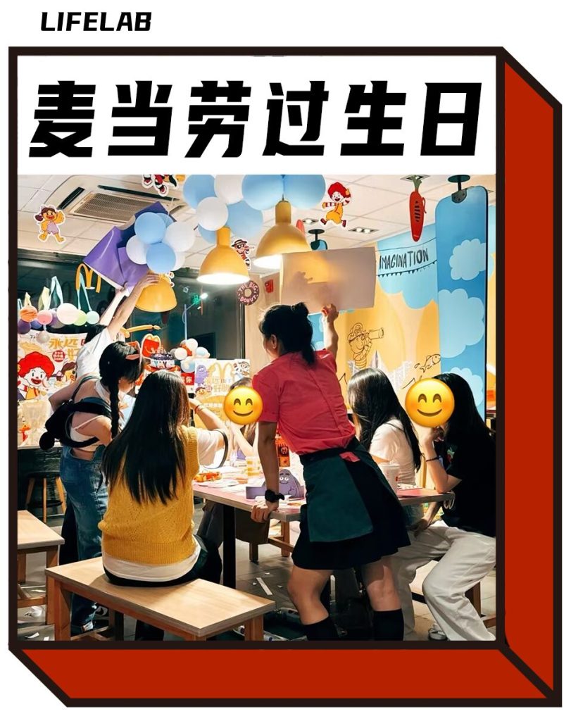 Allein McDonalds wirbt auf seiner chinesischen Webseite mit landesweit 1800 Filialen, die spezíelle Arrangements für Kindergeburtstage anbieten. Der Fastfood-Konzern hat solche Feiern in China eingeführt und popularisiert. Mehr als 30 Jahre später bietet er nun für die heute Erwachsenen nostalgische Geburtstagstreffen an, um wieder “wie ein Kind zu feiern.”