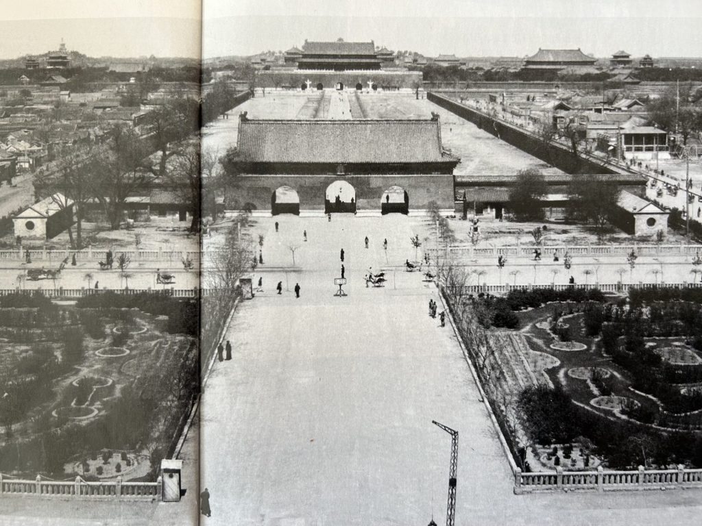 Als es 1417 erbaut wurde hieß es zuerst 大明门 “großes Ming-Tor”, später 大清门 “großes Qing-Tor”. Die Republik 1911 taufte es Zhonghuamen 中华门 “Chinas Tor”. Der Volksmund sagte nur 国门, das Staatstor. 1954 entschloss sich Mao, beraten von sowjetischen Experten, dieses Tor zur Erweiterung des Platzes abzureißen, was 1959 geschah. Nach Maos Tod wurde 1977 das Mausoleum auf dem Platz des früheren Tores erbaut. Ein historisches, mehr als 100 Jahre altes Foto zeigt wie imposant und städtebaulich unersetzbar das China-Tor einst war, bevor Maos radikaler Umbau begann.
