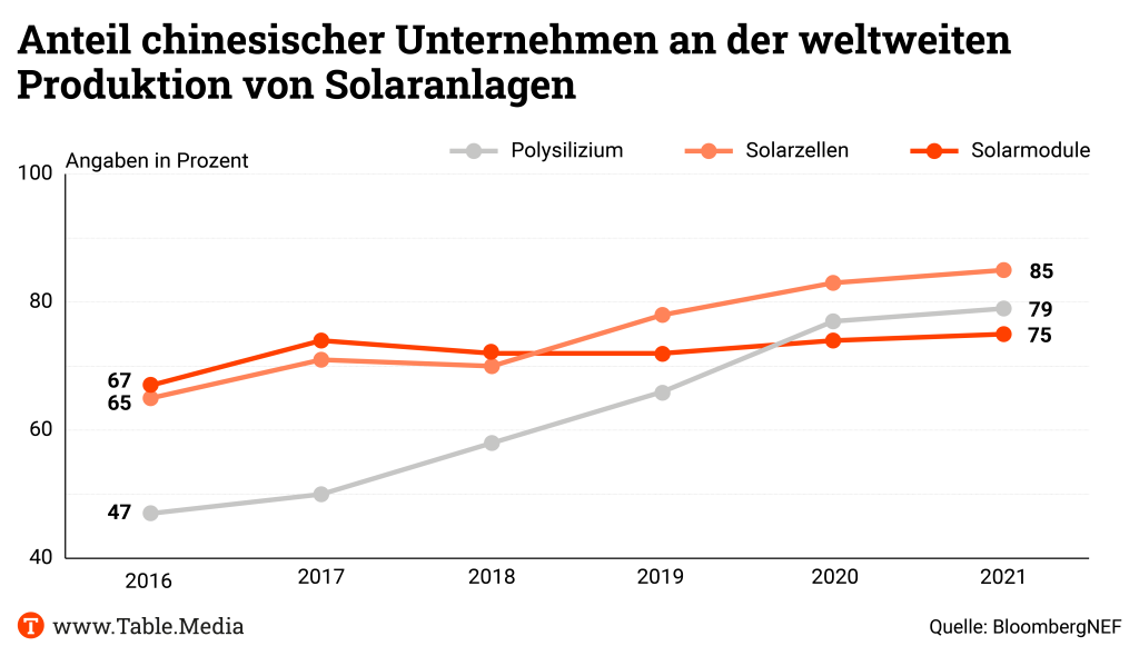 Und so könnten Chinas Überkapazitäten schließlich zu einer Zweiteilung des Weltmarkts für Produkte wie Batterien und Solarpaneele führen: Die Industriestaaten schotten ihre Märkte ab, etwa mit Anti-Dumping-Zöllen, und bauen eigene Industrien auf. Und alle anderen Länder kaufen dankbar die sehr günstigen chinesischen Produkte. Der Fortschritt der chinesischen Solarindustrie mache “Solarenergie zu einer der wirtschaftlichsten Energiequellen für die große Mehrheit der Länder und Regionen weltweit”, zitierte die Staatszeitung China Daily Liu Yiyang, Vize-Generalsekretär des Branchenverbandes China Photovoltaic Industry Association.