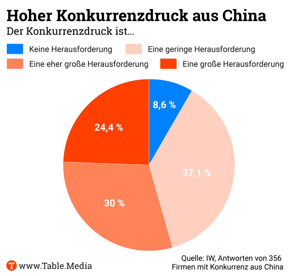 Der hohe Konkurrenzdruck geht aktuell auf mehrere Entwicklungen zurück, die sich überlagern: In China sind – spontan, aber auch aufgrund staatlicher Unterstützung des produzierenden Gewerbes – riesige Überkapazitäten entstanden. Das betrifft auch hochwertige Waren. Weil Chinas Konsum und Investitionen schwächeln, finden Firmen im Inland keinen Absatz. Das Überangebot drückt auf die Preise. In China ist derzeit fast alles deutlich günstiger als in Europa: Energie, Rohstoffe, Vorprodukte, Personal.