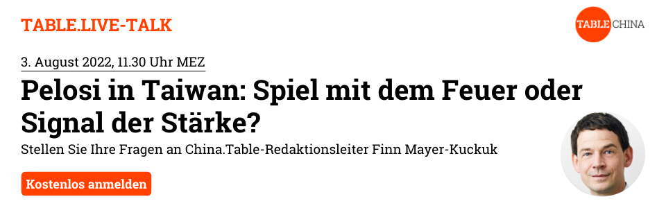 Angesichts der ausgestoßenen Drohungen gegenüber einem Besuch Pelosis muss Peking nun reagieren, wobei mehrere Varianten denkbar wären – vom Eindringen in Taiwans Air-Defense Identification Zone bis hin zu einer “Eskorte” von Pelosis Flugzeug (China.Table berichteten). Zuletzt hieß es von Seiten der chinesischen Luftwaffe, dass Kampfflugzeuge Taiwan umfliegen würden, um die Fähigkeit zur Verteidigung des eigenen Territoriums zu demonstrieren. Genaue Daten für ein solches Manöver wurden nicht genannt – sicherlich auch, um sich die Möglichkeit offenzuhalten, direkt auf die Route von Pelosis Flugzeug reagieren zu können.