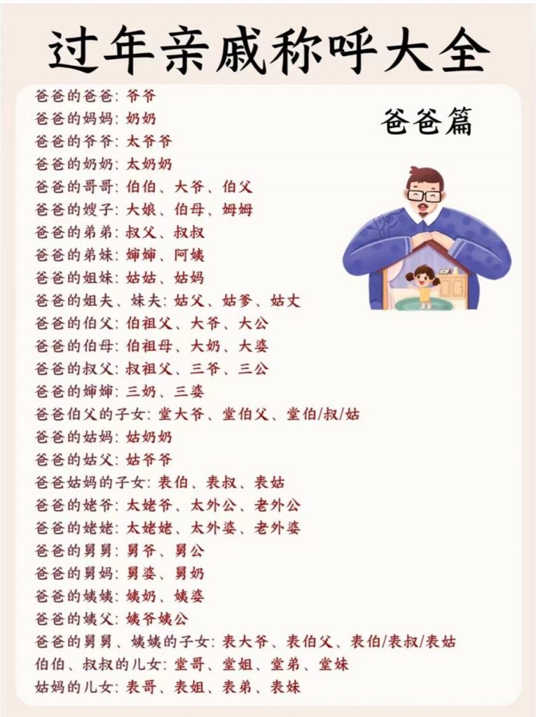 Millionen Einzelkinder verlieren den Bezug zur Verwandschaft und zur Familiensippe. Neuer Almanach, wie sie zum Neujahr ihre Verwandten mütterlicherseits in richtiger Weise ansprechen sollen.Für jeden Verwandschaftsgrad gibt es ein eigenes Schriftzeichen.