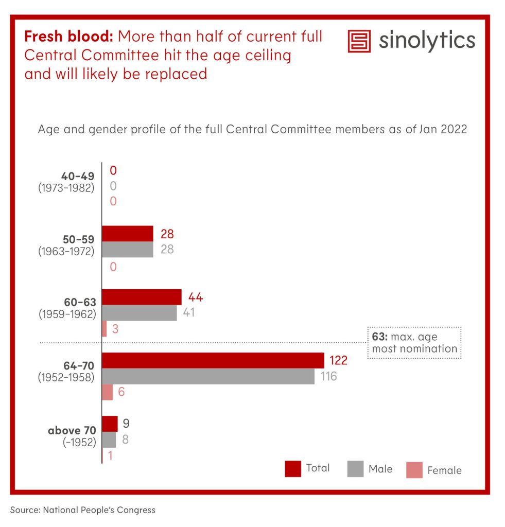Die Altersgrenze für die Ernennung von Mitgliedern des Zentralkomittees bedeutet, dass etwa die Hälfte der Mitglieder des gesamten Komittees ersetzt werden muss. Zum ersten Mal werden Beamte, die in den 1960er Jahren oder später geboren wurden, in der Mehrheit sein.