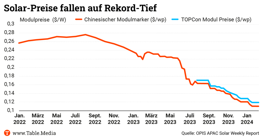 Indien arbeite ebenfalls mit Subventionen, allerdings mit geringeren als China, wie Lindahl erklärt. Diese und andere Entwicklungen hätten dazu geführt, dass der europäische Markt für chinesische Hersteller am attraktivsten bleibt. “Deshalb strömt ein so großes Überangebot an Modulen nach Europa. Das hat zum Preisverfall geführt und zu einer sehr schwierigen Situation für die europäischen Modulhersteller”, erklärt Lindahl.