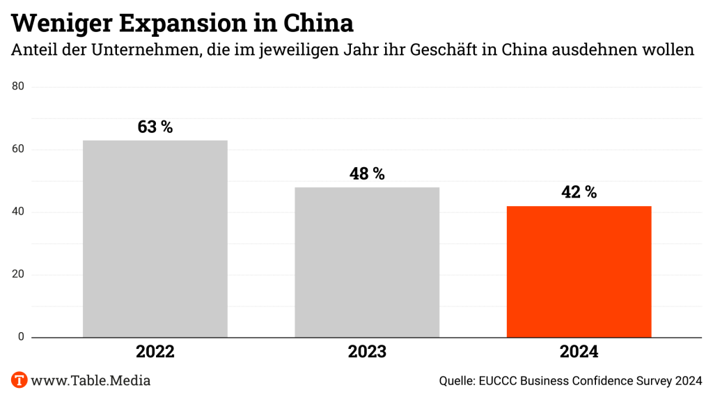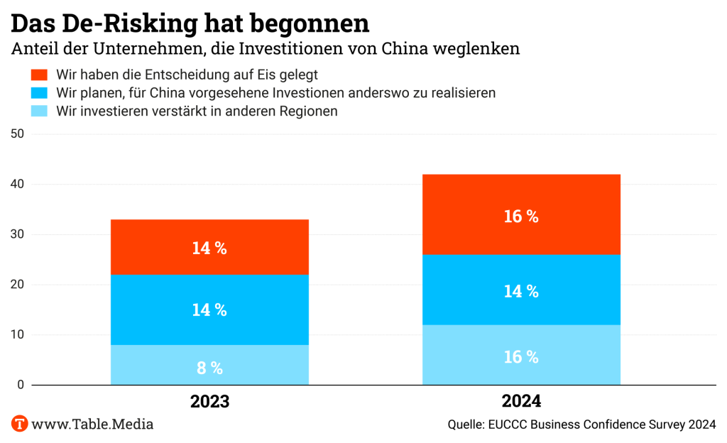 Die Kammer wies auch auf einen Punkt hin, der bisher wenig Beachtung fand. Bei der Frage nach der richtigen China-Strategie gebe es zunehmend eine “Entkoppelung” zwischen der chinesischen Niederlassung eines Unternehmens und der Zentrale in Europa. Dies sei “ein Trend, der genau beobachtet werden sollte”, so die Kammer. Selbst wenn die Niederlassung in China Expansionschancen sehe: Es werde immer schwieriger, Genehmigungen zu erhalten, da die Zentrale die tatsächlichen Gegebenheiten vor Ort immer weniger verstehe.