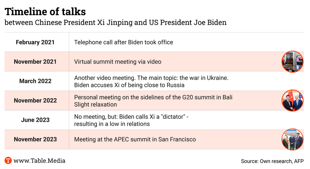 Even more important was the fact that the two heads of state are back in closer contact. In reality, the presidents of China and the USA have an astonishing degree of personal power. While US democracy may surround the head of state and government with limitations through the separation of powers, the years under Donald Trump, in particular, showed what the president can do.