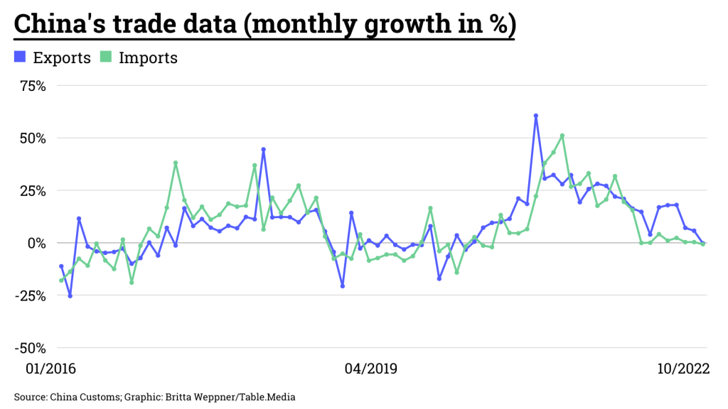 Observers cited the general decline in demand from abroad as a reason for the weak data: The global economy is weakening, which is why Chinese companies are no longer able to sell as much to other countries. However, Beijing’s ongoing strict zero-Covid policy is also cited as an important reason for the export malaise.