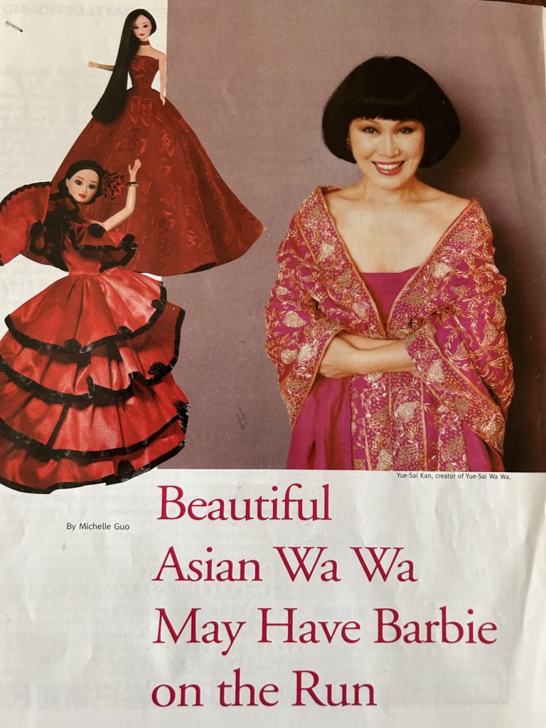 But her “patriotic” doll series for China’s girls failed. The Yue-Sai Doll 羽西娃娃 presented in Beijing in November 2000 – a black-haired beauty with Asian features and accessories ranging from qipao to red flamenco dance dresses – can now only be found on collector websites.