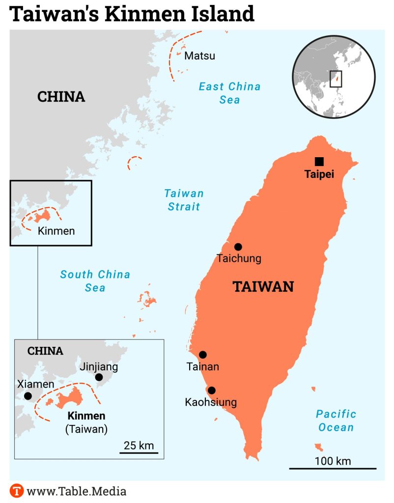 Kinmen is located directly off the Chinese coast and, therefore, much closer to the People’s Republic than Taiwan. All recent incidents have occurred around this frontline island. The circumstances there are somewhat unclear: Small boats constantly scurry back and forth between the islands. So what has changed is less the reality on the water and more its political interpretation.