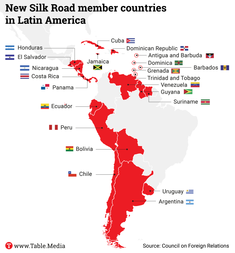 In Latin America and the Caribbean, 22 countries are currently members of the New Silk Road. China’s trade with Latin America has grown from around 18 billion US dollars in 2002 to over 450 billion US dollars in 2022. China has now replaced the US as the largest trading partner for most South American countries.