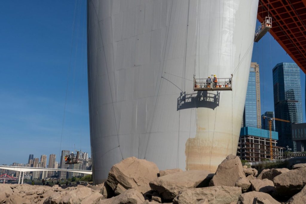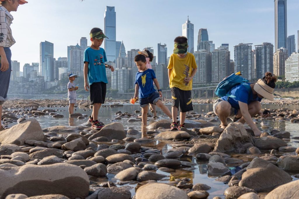 Chongqing currently offers an unusual sight. Like the Rhine in Germany, the mighty Yangtze River has shrunk to the width of a stream. The city is taking the opportunity to freshly paint bridge piers all the way to the bottom. Children play between the stones in the dry riverbed and catch crabs.