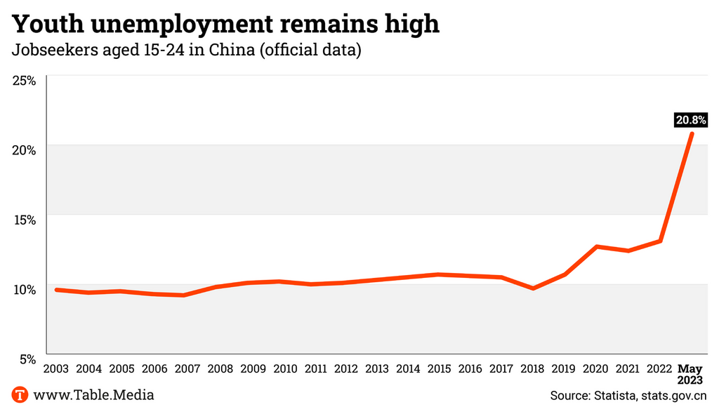 Dull economic figures always become particularly exciting when the stories of the people behind them are told. If every fifth young person in Chinese cities is without a job, that means millions and millions of frustration, fear, disappointment and anger. So it stands to reason that the Communist Party is deeply concerned about social stability in the country. An angry youth can quickly spiral out of control. Ask Paris.