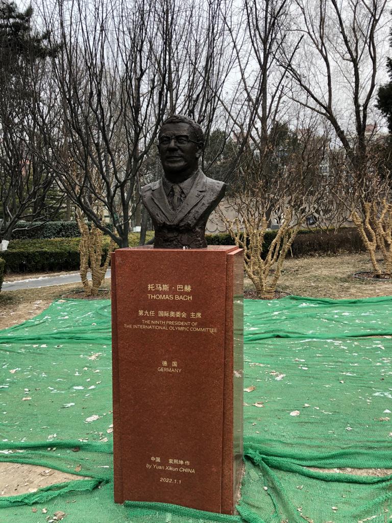 Beijing ensnared Bach by every trick in the book of Chinese attention. First, in mid-January, it had a two-meter-high monument erected to the IOC chief with his 72-centimeter bronze bust in the “Beijing Dongsi Olympic Park” (东四奥林匹克社区公园). Bach stands there as third in line alongside his predecessors Rogge and Samaranch on an equal footing. At the inauguration ceremony, it was said that Bach had brought the “splendor of the Games” to China’s capital for the second time.