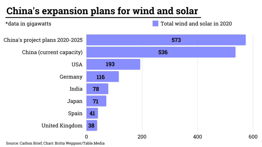 Simultaneously the largest consumer of coal and the biggest investor in renewable energies – China’s energy policy is ambivalent. The People’s Republic consumes by far the most coal in the world. But China is also expanding renewable energies faster than any other country. In 2020 and 2021 alone, China will have installed three times more solar and wind power plants than the USA or the EU.