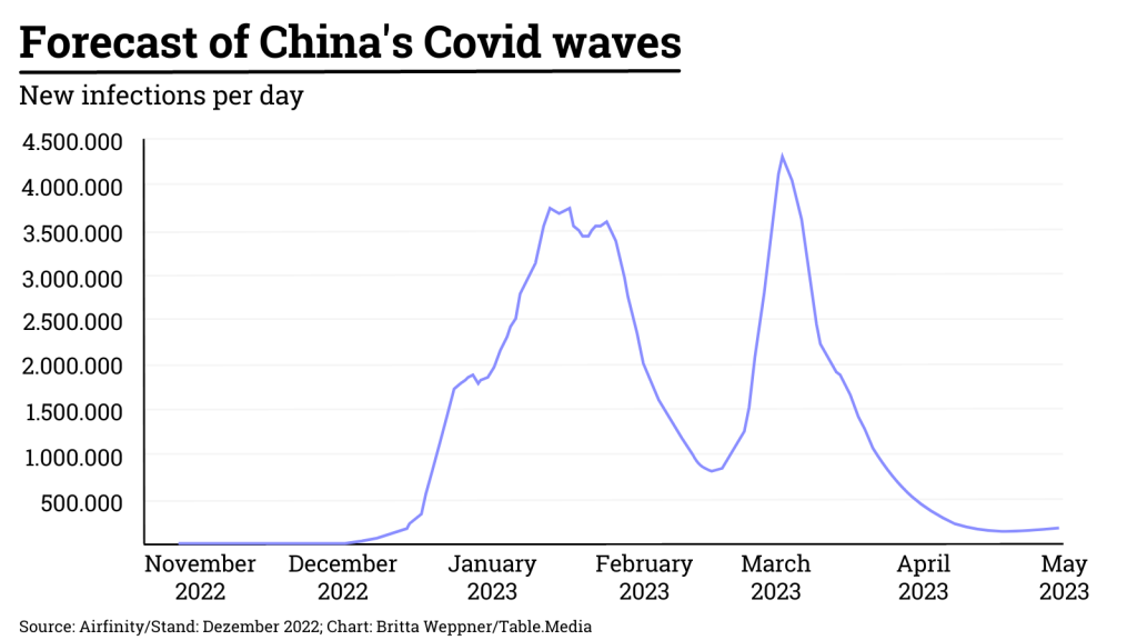 The London-based research institute Airfinity expects the current Covid wave could peak in the coming week with up to 36,000 deaths per day. Authorities expect nearly two billion passenger movements around the Chinese New Year. This is likely to contribute to an additional spread of the virus. rtr/flee