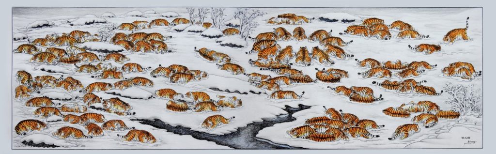 The “Picture of the 100 Tigers” (百虎图) by the Cantonese cartoonist Kuang Biao recently gained my attention. He drew 128 well-fed predators on an open field for the New Year of the Tiger, which begins on February 1st, 2022. Their number resembles – pronounced in Chinese – the lucky saying: “I want to become rich”. Hidden in the picture, however, is a second message: his tigers seem very lazy. Some of them look like dozing seals, their eyes closed, unwilling to attract attention, simply ducking away.