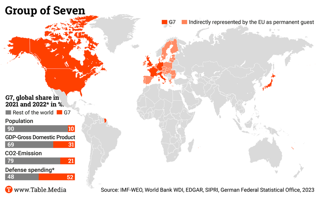 The G7 countries have long since lost their position as the leading economic powers. For some time now, India has had more economic power than Italy, Canada, and even the United Kingdom. China is number two, right after the US. When the G7 meet on Friday in Hiroshima, Japan, they will no longer be able to set the agenda in the way they could a few years ago. Instead, they are driven by the issues other powers set for them: Russia and China.