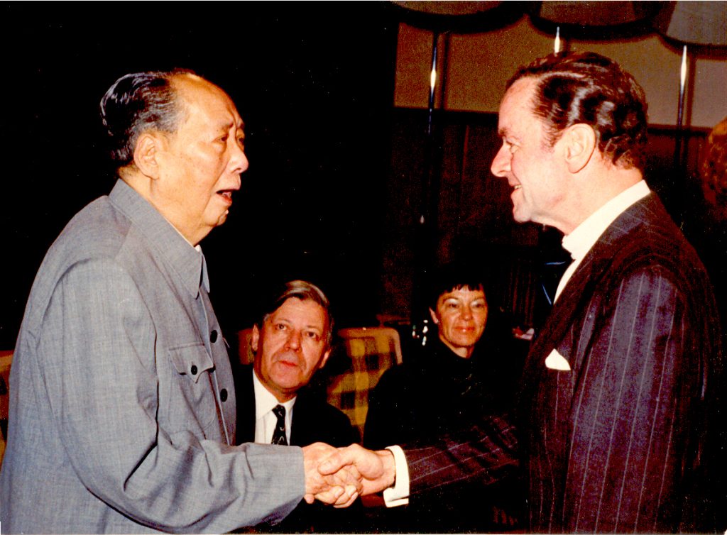 Old photos were also in demand. I once found photographs of Mao receiving German Chancellor Helmut Schmidt and his wife Loki at his Zhongnanhai residence on October 30, 1975. The original prints had apparently been discarded because the German guest of honor was waiting with Mrs. Loki on a bench in the anteroom while Mao stood and just greeted the German ambassador at the time, Rolf Friedemann Pauls, who accompanied Schmidt. When I met Helmut Schmidt later in Beijing, I gave him one of the photos as a gift.