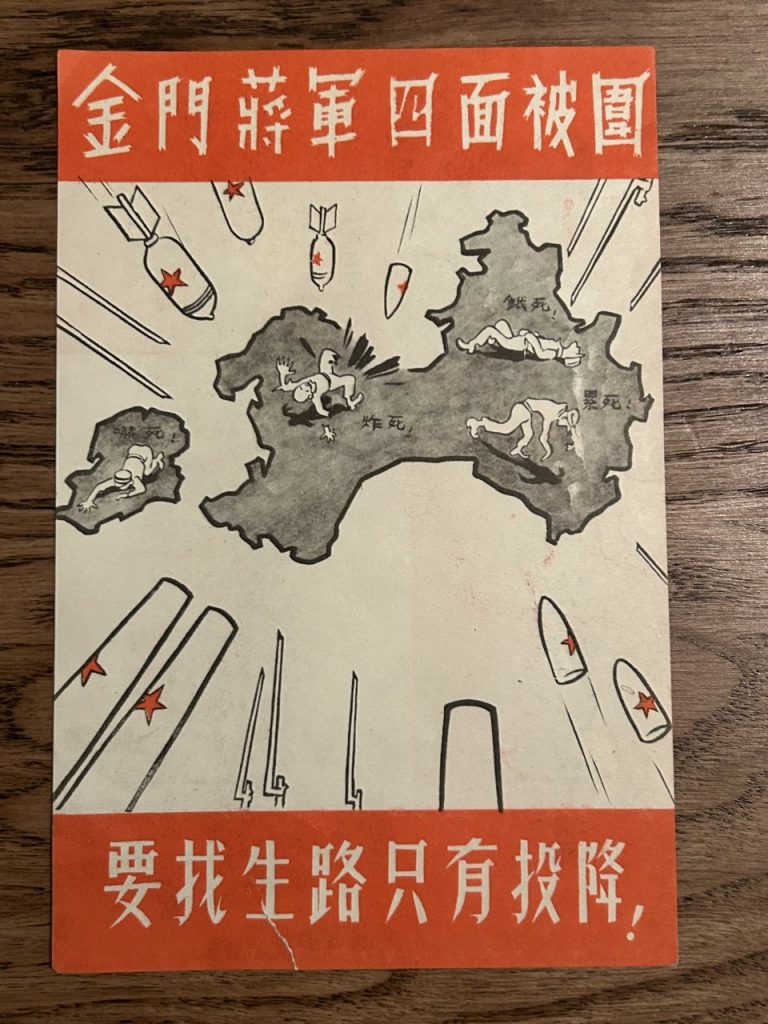 Everything that seemed useless was apparently discarded. Among them were piles of canceled leaflets from the propaganda war between the People’s Republic and Taiwan. Starting in the late 1950s, Beijing had the Taiwanese island of Qinmen bombed and repeatedly shot with propaganda shells full of leaflets. Apparently, Beijing ministries kept the receipts. These ended up in flea markets, along with leaflets dropped on China from Taiwan. Mainland citizens loyal to the state picked them up and delivered them. I saw the leaflets lying on a stand: One called on Taiwan’s islanders to surrender, the other on China’s peasants to overthrow the Mao regime.