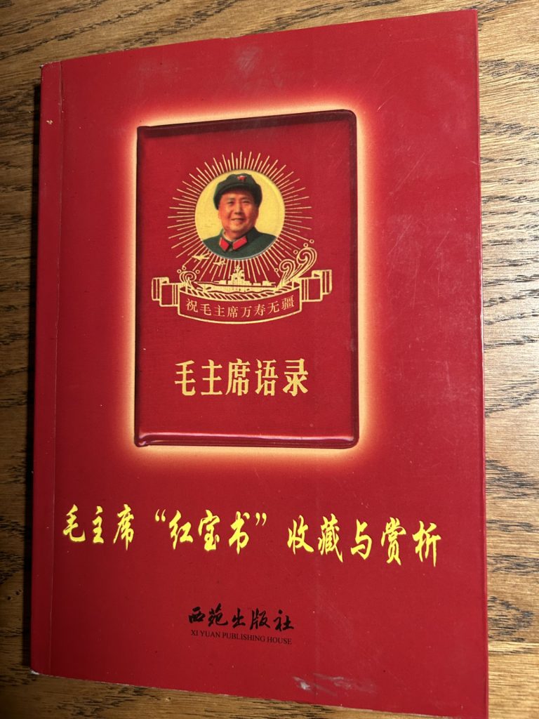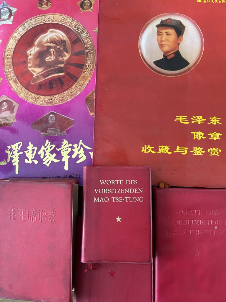 Today, almost 50 years after Mao’s death, everything that once had anything to do with him (except his class struggle thinking) is worth even more money. What would the Great Chairman say if he came across the new auction catalog for Mao objects from the Cultural Revolution? On 216 pages, the London auction house “Chiswick Auctions” offered bundles of the “Words of Chairman Mao Zedong” 毛主席语录 and other Mao trinkets. The starting bids were generally far higher than Mao’s former monthly salary.