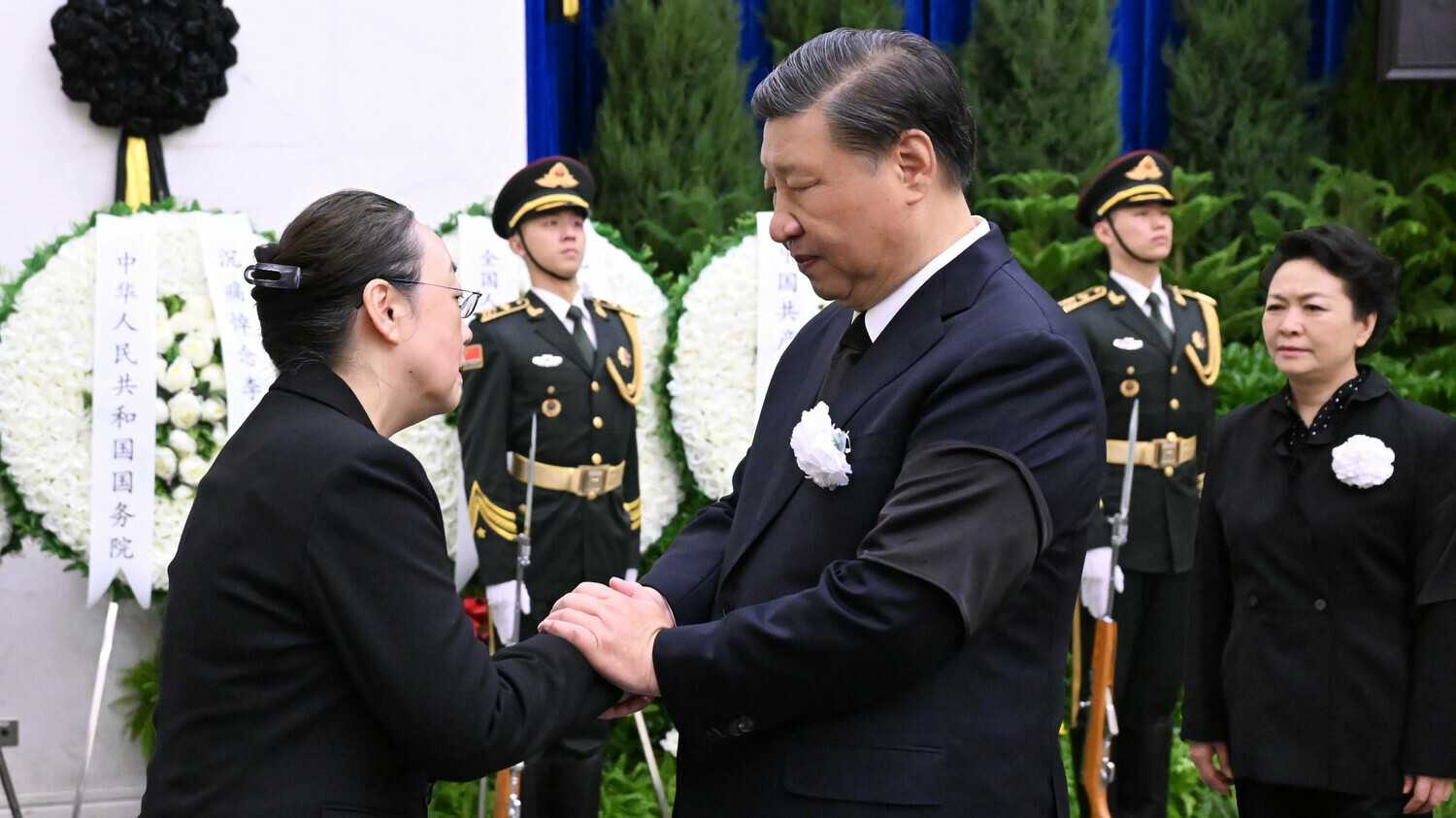 At around nine in the morning, President Xi Jinping and his wife, along with the six other members of the Politburo Standing Committee of the Communist Party, as well as Vice President Han Zheng, paid their last respects to the former premier. They bowed three times in silence, as is customary on such occasions. President Xi took the hands of Li’s wife, Heng Hong, a professor of economics, with both hands to express his condolences. He wore a white carnation on his lapel.