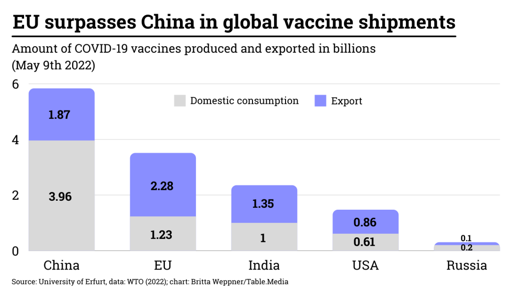 The Chinese Covid strategy not only came under criticism from the World Health Organization this week – the positive external effects of China’s vaccine diplomacy on the country’s reputation are also visibly fading. Vaccine shipments from the People’s Republic have almost come to a standstill in 2022, Stefan Schmalz, a political economy expert, and economist Philipp Koencke reported at the Table.Live briefing. One reason for the mood change was that Beijing charged a lot for its shipments, while the vaccines did not have the desired effect.