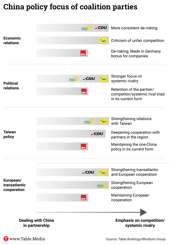 Schumann: The best government constellation is one that pursues a sober, economic and future-oriented policy. It is crucial that it recognizes Germany’s economic realities and should not fall into a confrontational or naive stance towards China. It must strike a new balance between our values and interests, because we also have interests, not just values. Such a government must pursue a policy that is coordinated with our European partners – but also with the courage to represent and promote an independent position on China among these European partners. Germany continues to enjoy a high reputation in China. This reputation must be used to build bridges – in the interests of Germany and Europe.