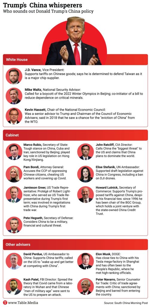 “The trade conflict between the US and China is set to intensify,” Oliver Oehms, Managing Director of the German Chamber of Commerce in North China, told Table.Briefings. However, it is not yet possible to predict what exactly the measures of the new US administration will look like and what priority they will be given.