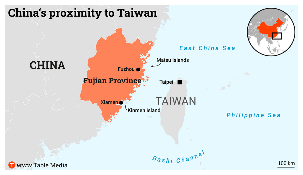 The islands of Kinmen and Matsu play a special role in Beijing’s plans. They belong to Taiwan, but the islands are much closer to Fujian than Taiwan. For example, the distance between Kinmen and the Chinese mainland is only two kilometers. Accordingly, the islands already had the strongest connections to the mainland in the past. Therefore, Beijing’s new peace plan announces to accelerate their integration further.