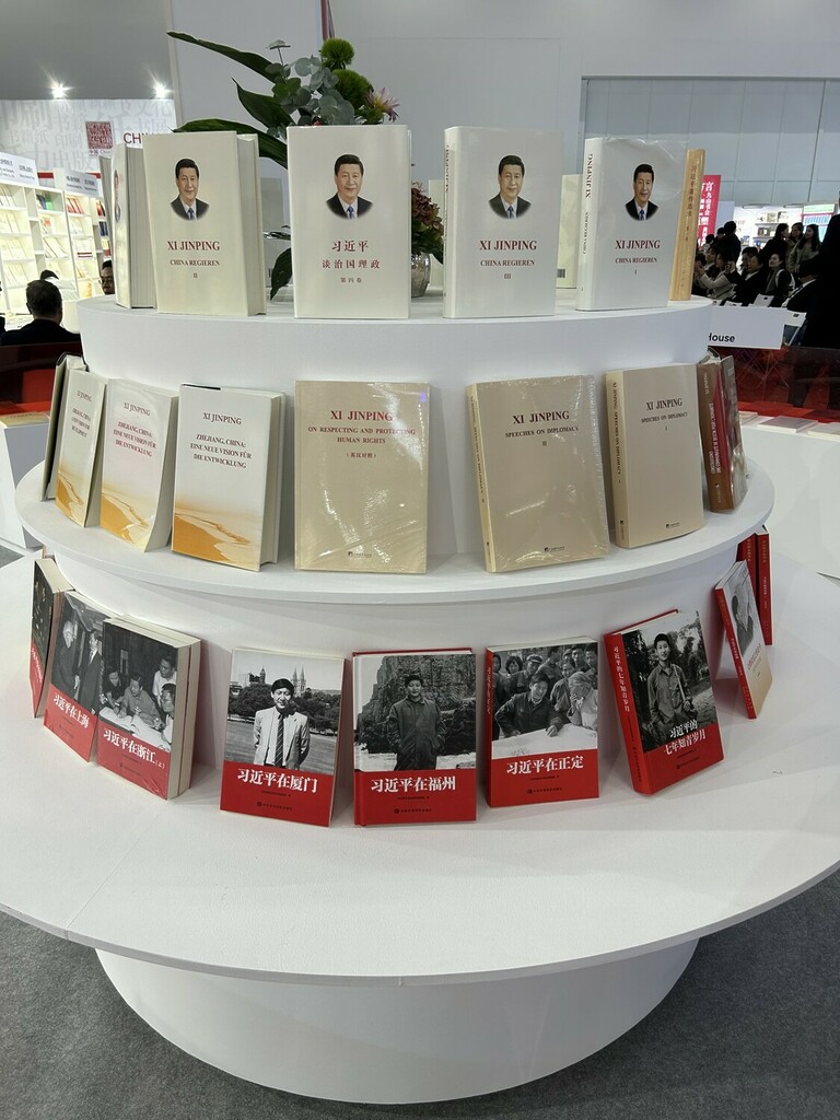 There was little evidence of this at China’s book booths. In dull simplicity, they mainly exhibited speeches, writings, monographs or selected works by Xi, sometimes as a wall of books, sometimes set up in a circle.