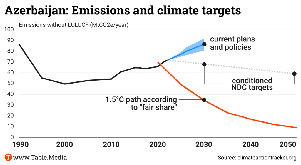Meanwhile, the International Energy Agency (IEA) is urging a reduction in methane emissions from oil and gas production. Azerbaijan also joined the “Methane Pledge” set up for this purpose in the spring – but instead of reducing its methane emissions, the country is facing a rapid increase.