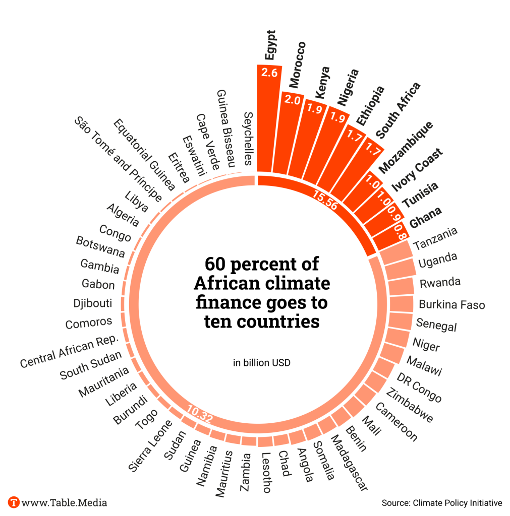 The gap between necessity and feasibility is particularly wide in many African countries. Achieving climate neutrality by 2050 requires a total investment of about two trillion dollars. The need and opportunities for financing are especially significant in Africa: The continent has large potentials for renewable energy, which are largely untapped. Africa represents about 20 percent of the world’s population but only 3 percent of CO2 emissions. The Climate Policy Initiative has compiled many important details in an informative overview.