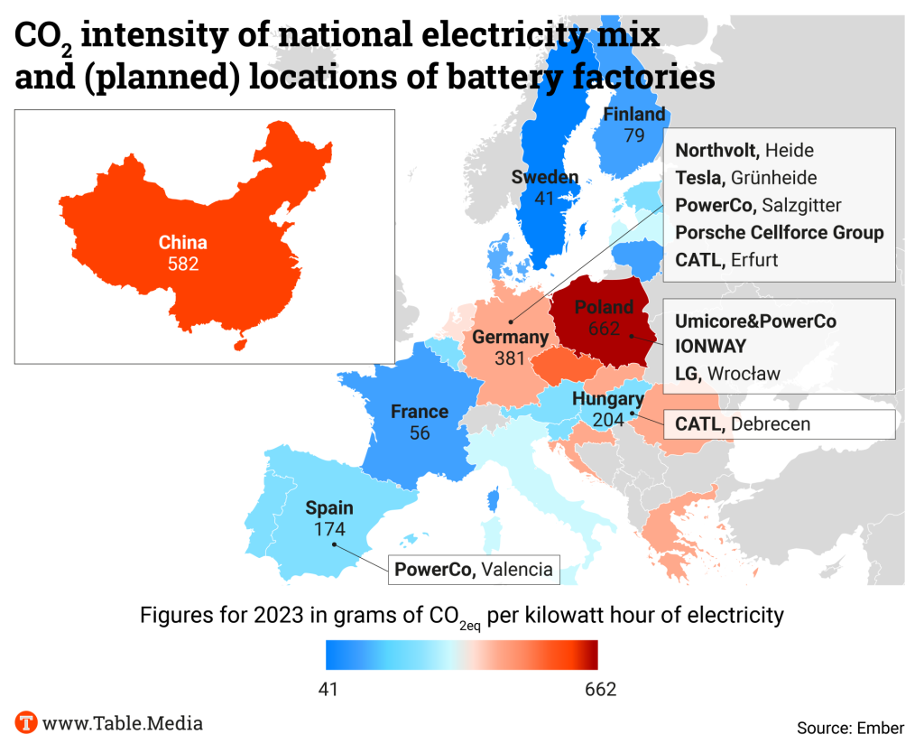 German manufacturers can still take comfort in the fact that the CO2 rules from the Battery Regulation will also apply to imported batteries. Electricity in China, for example, is still dirtier than in Europe, with specific emissions of 582 grams. Although China has already established a strong position, the battery market there is currently consolidating.