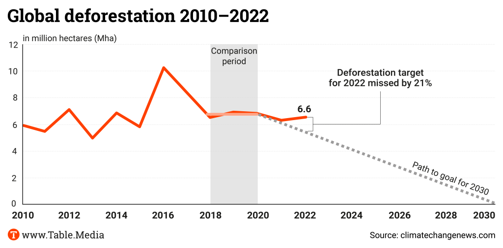 The global goal is to halt deforestation by 2030. At COP26 in Glasgow, heads of state and government pledged with the Forest Pledge to preserve forests, combat forest fires, promote sustainable agriculture and support indigenous communities. They also committed to “significantly” increase funds for these goals. Wealthy nations promised 12 billion dollars in climate financing for forest protection between 2021 and 2025. A smaller group of actors had previously committed to similar goals in the New York Declaration on Forests in 2014. Additionally, at COP27 last year, the Forest and Climate Leaders’ Partnership was established to support the implementation of the Forest Pledge.