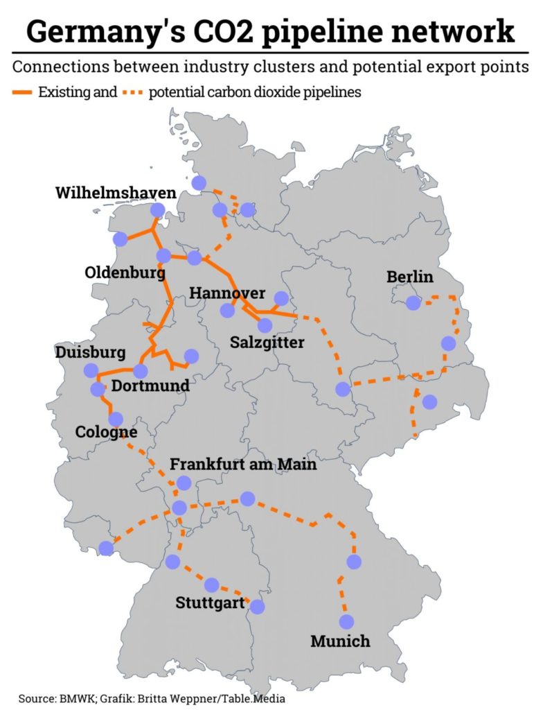 These considerations fulfill an urgent demand from the industry regarding legal certainty. “We need more clarity from policymakers,” says Antje Schünemann from the Wintershall/DEA energy group. At the moment, the export of carbon dioxide is not even permitted in Germany, although her company is already making plans: In Wilhelmshaven and on the Danish coast, the company plans to set up “CO2 hubs” where ships carrying carbon dioxide cargo will be able to dock, among other things. And from 2032, these plans envision a pipeline that will transport up to 20-40 million metric tons of carbon dioxide a year over 900 kilometers from the North German coast to the “Luna” field in the Norwegian North Sea, among other places. “We want to offer various options for the safe storage of CO2,” Schünemann said.